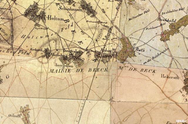 Das Kapellchen ist dem hl Antonius gewidmet. Der Sockel des Kreuzes trägt die Inschrift: Anno 1806 den 21. Apr. cruzi s. missioni Franciskus Xaverius, S.Donatius. aus X.131 Diese Kapelle ist ein Relikt aus der Franzosenzeit, also der Zeit als diese Gegend zu Frankreich, Departement Roer, gehörte. Anfang 19 Jhd war es verboten, Kreuze Bilderstöcke etc offen zu zeigen. Also hat man flux ein Häuschen drum gebaut.