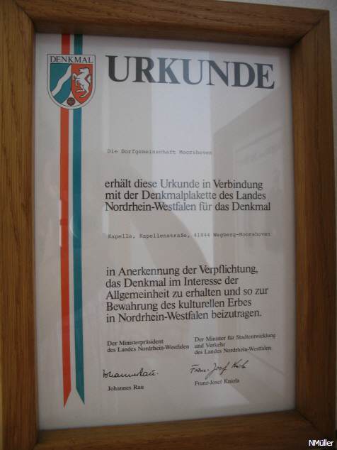 Pfarrer Franz Wilhelm Geusen hatte die Dorfbewohner ermuntert, ein Kreuz in Mtten des Dorfes zu errichten. Darum Herum wurde die Kapelle errichtet am 14.9.1746 wurde sie eingeweiht