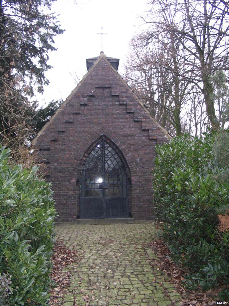 Die Kapelle liegt nördlich der Zufahrtsweges zur Vorburg des Wasserschlosses "Haus Horst". Freistehende Kapelle aus unverputztem Ziegelstein unter Satteldach. Gedrückter quadratischer Dachreiter mit sehr flachem Dach und filigranem Kreuz. Die Gebäudeecken sind durch je eine Eckquaderung aus Ziegelsteinfeldern betont, die in je einen gemauerten Stufenbogen an den beiden Giebelseiten übergeht. Die Frontseite zeigt ein Spitzbogenportal mit erneuertem Schmuckgitter, das durch seine Gestaltung die Bogenform aufnimmt. An den beiden Langseiten je drei Spitzbogenfenster auf gemeinsamer durchlaufender Sohlbank und Fensterrahmung aus schräg gestellten Ziegelsteinen. Im Inneren ein zeitgenössischer Altar.