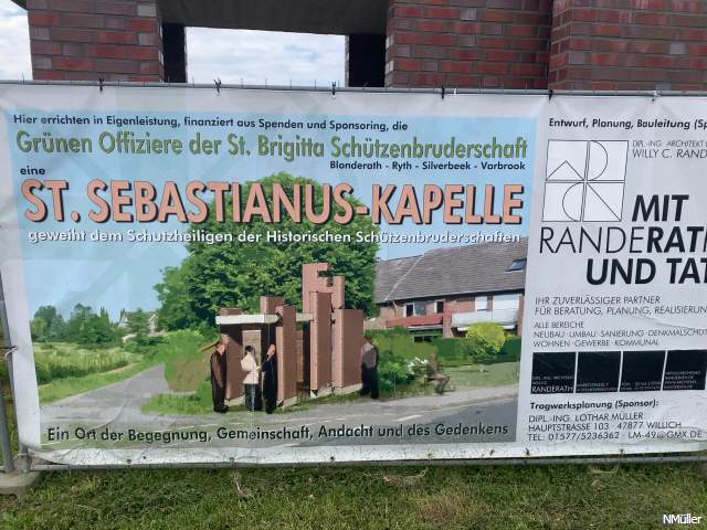 Am 14. April 2018 begann der Bau mit der Fundamentaushebung. Schützenbruder Fred Pichler hat die Verantwortung für Fundament und Mauerwerk übernommen. Koordiniert wurde das Projekt durch Stefan Schrammen. Und somit nahm die Kapelle an Gestalt an.