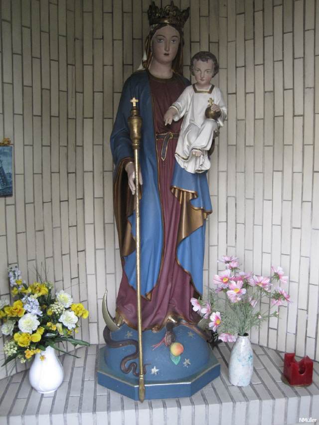 Die Darstellung der Madonna ist die der Mondsichelmadonna, farblich noch sehr schön.