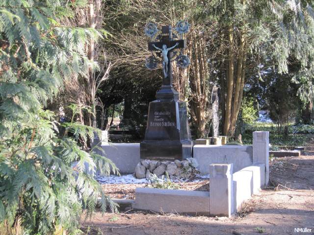 Die Schrift der Rückseite bezieht sich auf kriegerische Ereignisse des 18 Jhd, dem das damalige Kreuz zum Opfer fiel aus III40f
