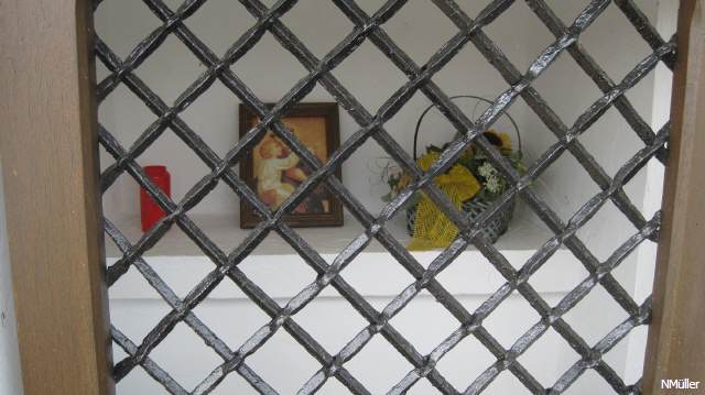 Sie sind hier: Startseite » Kreuze Ehrenmale Kreis Viersen » Grefrath » Schaphausen Schaphausen Bilderstock Wege-(Bild)stock aus dem 18.Jahrh., bestehend aus verputztem Sandstein, Nische mit Holzgatte
