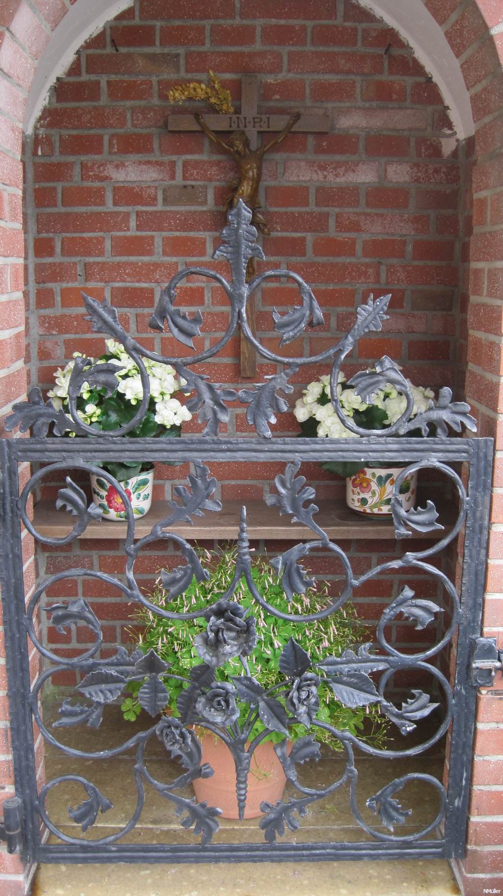 Sie sind hier: Startseite » Kreuze Ehrenmale Kreis Viersen » Brüggen » Lüttelbracht BRU Lüttelbracht Genholterstr Missionskreuz Gedenkkreuz an der Kirche zur Erinnerung an die Gefallenen Bilderstock Lüttelbrachter str
