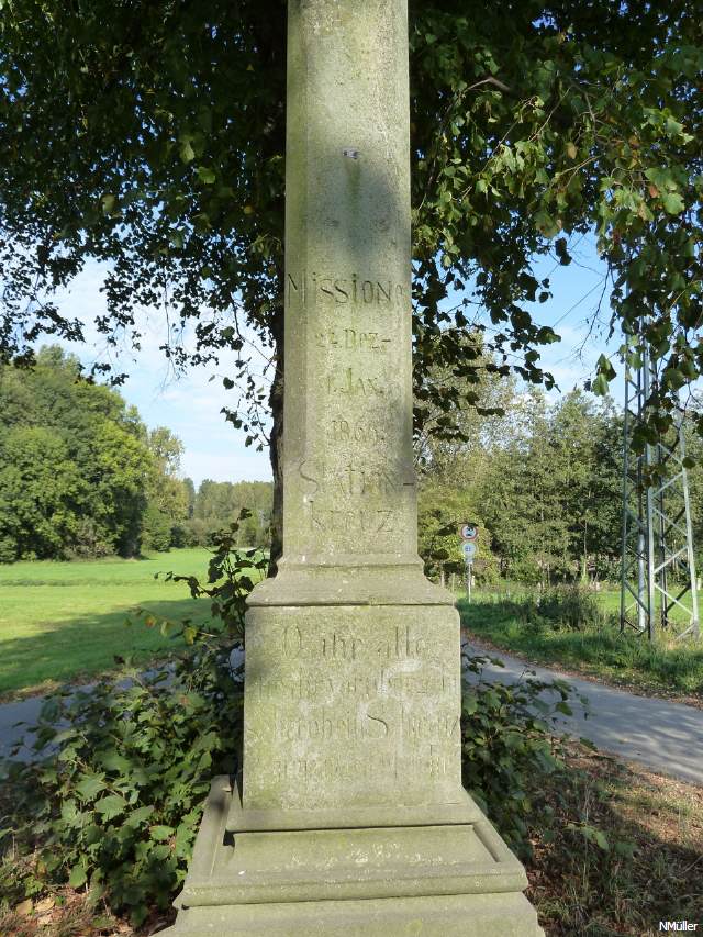 Dörkes Kreuz von 1915 . Da ein altersschwaches Kreuz 1859 der Eisenbahn weichen mußte und umgesetzt wurde, errichteten Peter Heinrich Dörkens und seine Frau Sibilla diese Kreuz, um den im Krieg kämpenden Söhnen zu gedenken. Da auch der Pilgerweg nach Klein Jerusalem hier vorbeiführt, wird dieses Kreuz oft besucht. Vorderseite:" mein Jesus Barmhezigkeit 100 Tage Ablass PIUS IX 23.9.1846