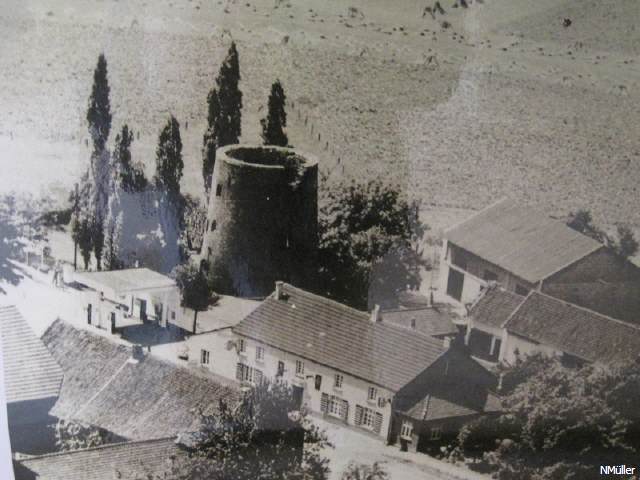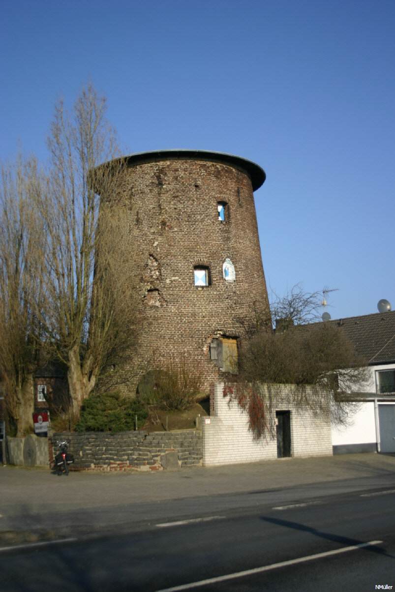 Dieser Turm ist 14 Jahre jünger als der in Gerkerath. Gemahlen wurde bis kurz vor den ersten Weltkrieg. Seit 1926 ist er in Familienbesitz. Zwischen den großen Kriegen trug er noch die ursprüngliche Haube, aber ohne Ruten.