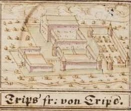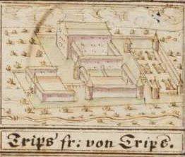 Seit dem 14. Jahrhundert Stammsitz der Familie Berg(h)e von Trips, kam die Anlage in der ersten Hälfte des 18. Jahrhunderts an die Freiherren von Eynatten, welche die trutzige Anlage durch Umbauten und Erweiterungen im Stil des Barocks umgestalten ließen.