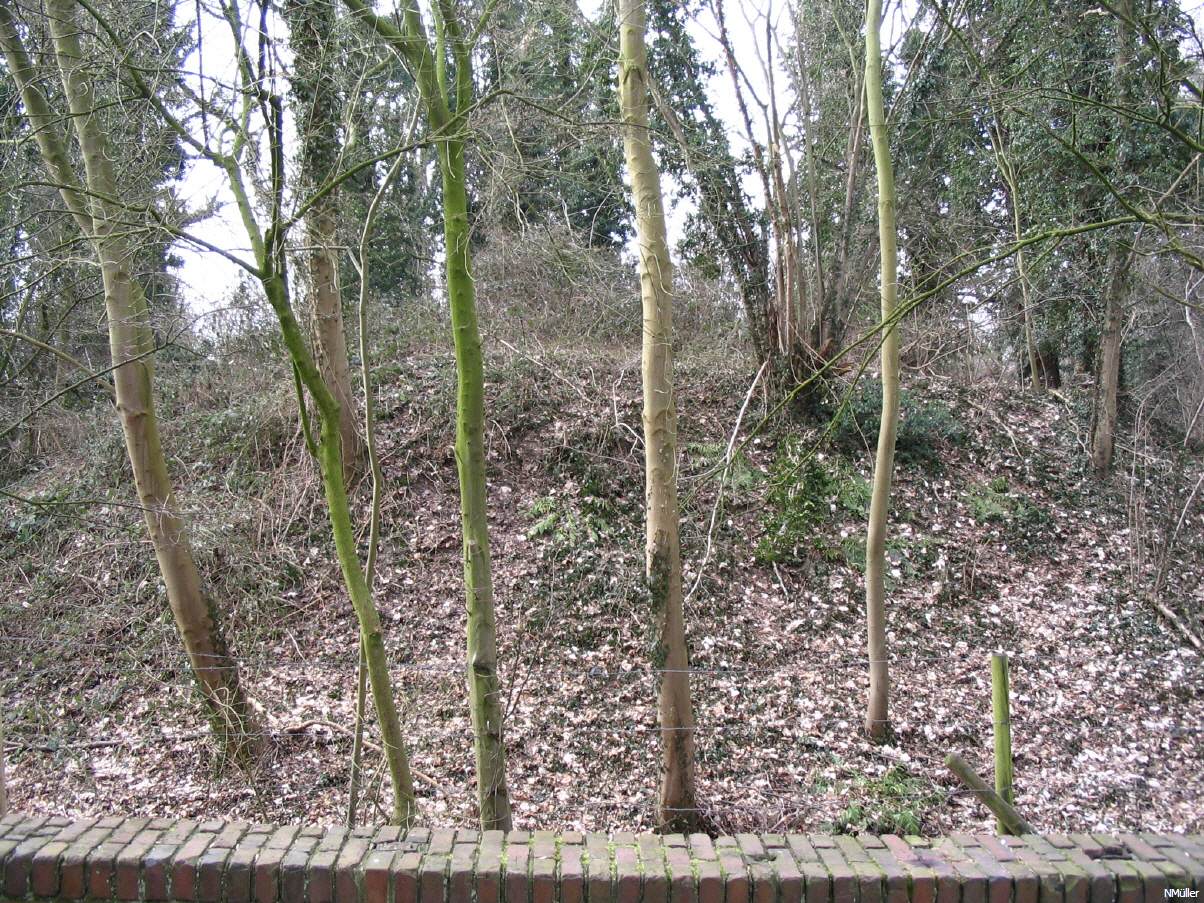 Unmittelbar neben "Haus Beeck" und der Kirche gelegen Auch hier handelte es sich um eine kleine Niederungsmotte, das „Neuhöffche“63 lag 300m westlich der Beecker Kirche. Das Anwesen liegt in einem Erlenbruch und besteht heute aus einer kaum sichtbaren 1m hohen Erhebung im Gelände. Auch hier sind die Gräben mit Schutt angefüllt worden. Ursprünglich hatte sie wohl eine Größe von 20m Durchmesser und die Vorburg war 50 x 42 m groß64. 1931 sind vom adeligen Gutshof nur noch Gräben und Mauerreste vorhanden. Die erste urkundliche Erwähnung ist uns aus dem Jahre 1379 überliefert. In dieser Vergleichsurkunde zu einer Auseinandersetzung wegen des Hauses Beeck ist auch der Neuenhof erwähnt. 1495 wird bei der Belehnung des Johann von Elsen65 mit Haus Beeck auch der dazu gehörige Neuenhof, mit 30 Morgen Land erwähnt. 1601 wird vom Elsen (Erlenbäume) – Holzgewächse an dem „neuen Hove“ und am Bonenkamp66 berichtet6 Als Stammherr ist hier der Wilhelm von Beeck, Sohn des Wilhelm der um 1500 lebte bekannt68. Der Sohn Godart, gestorben 1532 war mit Elisabeth von Kessel69 verheiratet, sie vermacht zusammen mit ihrem Sohn Godart der St. Anton und St. Sebatianus Bruderschaft Beeck eine Jahresrente von 5 ½ Sümber Roggen. Dieser Sohn heiratet eine von Hücking, aus dieser Ehe sind die beiden Töchter Elisabeth und Agnes bekannt. 1506 wird der „Nuwe Hoff“ genannt, vermutlich ist er kurz vorher als Nachfolger der Mottenburg errichtet worden. In einer Teilungsverabredung von 1579 zwischen Godhard von Büchel, Sohn des Conrad und der Elisabeth von Beeck und Ludwig von Mülstroe zu Hall Sohn des Heinrich von Olmissen und der Elise von Beeck erhält Ludwig den Neuenhof. Beide Parteien müssen jeder zur Hälfte ihrer Möhn (Tante) Agnes von Beeck, Priorin des Klosters Dalheim eine Jahresrente von 10 Malter Roggen zahlen, sie stirbt 1587. Die Eltern von Ludwig werden 1543 vom Aachener Probst mit dem Gerichhausener Hof belehnt. Paul Alfer und Karl Peters gehen in ihrer Geschichte der Gemeinde Beeck davon aus das der Hof bereits im 30jährigen Krieg abgebrannt sei. Arnold der Halfmann vom „Neuenhoff“ klagt vor dem Vogt zu Wassenberg, dass er sich weitere Kontributionszahlungen nicht leisten kann. Das kann aber nicht stimmen, da noch 1659 in einem Vergleich zwischen Henrich von Beeck zu Morshoven und Henrich von Ingenhoven zu Baerl mit Hans Henrich von Beeck, der Hof wieder in die Hände der von Beeck übergeht. rst im Jahre 1692 ist das Gebäude verschwunden, denn in einer Gütertrennung der Geschwister von Beeck, aufgenommen im Haus zu Grambusch, bekommt Johann Adam von Beeck „die Weide onder Haus Beeck früher Neuenhof“. Sein Bruder Johann Henrich, verstorben vor 1711, erhält als Ältester den „ahligen Vorteil“ das Haus Beeck, er ist seit 1683 mit Fanziska Maria von Ingenhoven vermählt. Die Eltern der beiden Brüder sind Johann Heinrich von Beeck und Anna Maria Henrika von Elmpt 1711 findet dann ein weiterer Vergleich zwischen der Witwe Marie von Ingenhoven mit Johann Adam von Beeck statt, da er ohne Nachkommen ist, erhält er lebenslanges Wohnrecht auf dem unteren Hause Beeck, freies Mahlrecht, den untersten halben Garten, das unterste Taubenhaus, die Hälfte aller außerhalb des Hauses Beeck liegenden Weiher, die Hälfte der Ländereien des Neuenhofes. Die Büschen zu Beeck und Neuenhof zur Hälfte, diese haben einen Wert von 6000 Reichstalern. aus rund um Wegberg [3.115 KB] |
