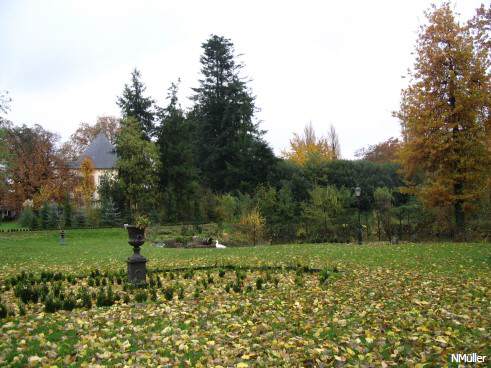 Beschreibung: ein mit Wassergräben umgebenes Herrenhaus, Wappenstein aus dem Jahre 1664.