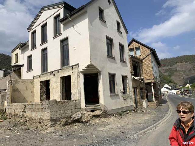 ist man im Ort dann ist alles nahe den Flusses zerstört/unbewohnbar man erkennt nichts mehr wieder der Nepomuk auf der Recher Brücke hat gehalten alle Wanderwege im Tal sind nicht begehbar, in den Bergen ok. das eine oder andere Lokal im Ort hat wieder auf , Unterstützen!
